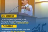 Pilarkita.id, Kendari – Pemerintah Provinsi Sulawesi Tenggara mengklaim realisasi Pendapatan Asli Daerah (PAD) hingga akhir Maret 2026 tercatat mencapai Rp326.470.617.965 atau setara dengan 23,49…